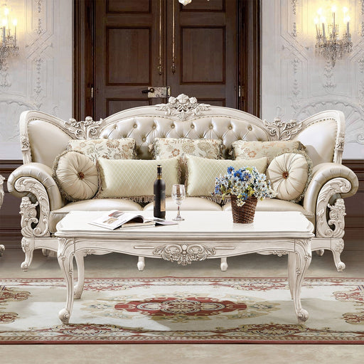 HOMEY DESIGN3PC SOFA SETDimensions: Sofa 90-1/2″*41-1/2″*46″ Love 75″*41-1/2″*45-1/2″ Chair 51″*41″*46″Finish: Plantation Cove WhiteUpholstered Material: Leath...