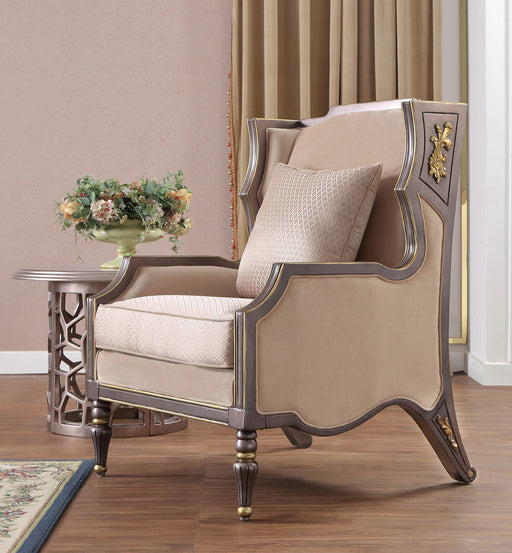 HOMEY DESIGN3PC SOFA SET3pc Set Includes: 1 Sofa, 1 Loveseat, 1 ChairDimensions: Sofa: 94x39x42 Loveseat: 76.5*39*42 Chair: 35.4×32.5×46Finish: GoldUpholstered...