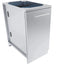 The Sunstone 18 In. full height trash drawer cabinet with two large top loading trash bins front and back is great for combo bins for recyclables, or compost and waste trash. The cabinet is designed to blend perfectly with most other industry brands, BBQ grills and components with its even toned number 4 horizontal light brushed finishes, all 304 stainless steel construction with large 304 stainless steel rod handles. Install this cabinet in a group or on its own, with stacked stone on either side, it makes no difference, cabinet is finished on the back panel, so it works great either against a wall, or in the open and or even as a moving cart with optional wheel casters. All Sunstone cabinet are easily installed with simple pin-locks, simply lift and drop each cabinet into each other, no tools are required for much of the installation process and most cabinet configurations can be setup in less than an hour. For full-bull nose counters – simply remove each of the cabinets counter-rail seen as the top horizontal column, and overlap counter over front edge making for some elegant added features. The cabinet comes completely setup, only fasten door handle, hand-screw each adjustable leg in place, and snap on the front and back kick-plates.