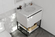 Elevate your space with the Alto Collection! This vanity will bring the New York penthouse vibe to your house. With its straight, simplistic lines and open bottom concept, the Alto collection offers elegance with a modernistic approach. The open bottom shelf can be removed so the vanity can be both wall mounted or freestanding to fit any bathroom design. The matte black, powder coated steel legs and black paint above the drawer offers contrast and chic style. Additionally, the handleless drawer design is embedded within an inner beveled frame. All this is accompanied with soft closing rails, dovetail construction drawers, and solid oak wood frame. Make the Alto collection the statement piece in your bathroom!