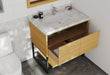 Elevate your space with the Alto Collection! This vanity will bring the New York penthouse vibe to your house. With its straight, simplistic lines and open bottom concept, the Alto collection offers elegance with a modernistic approach. The open bottom shelf can be removed so the vanity can be both wall mounted or freestanding to fit any bathroom design. The matte black, powder coated steel legs and black paint above the drawer offers contrast and chic style. Additionally, the handleless drawer design is embedded within an inner beveled frame. All this is accompanied with soft closing rails, dovetail construction drawers, and solid oak wood frame. Make the Alto collection the statement piece in your bathroom!