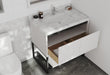 Elevate your space with the Alto Collection! This vanity will bring the New York penthouse vibe to your house. With its straight, simplistic lines and open bottom concept, the Alto collection offers elegance with a modernistic approach. The open bottom shelf can be removed so the vanity can be both wall mounted or freestanding to fit any bathroom design. The matte black, powder coated steel legs and black paint above the drawer offers contrast and chic style. Additionally, the handleless drawer design is embedded within an inner beveled frame. All this is accompanied with soft closing rails, dovetail construction drawers, and solid oak wood frame. Make the Alto collection the statement piece in your bathroom!
