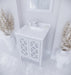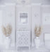 Presenting the Mediterraneo Collection, if you’re going for the “Putting on the Ritz” look, with a nod to classical vintage, this look brings its classic relevance to today’s bathrooms. The Mediterraneo vanity features a real wood cabinet with doors that showcases classical cut-outs, layered onto a mirrored glass background. As you reach for the crystal glass knobs on the cabinet's soft-closing doors, they open to an open bottom platform which contains a surprise hidden drawer with soft closing rails. Style and functionality have indeed married and produced this fantasy beauty, come to reality in two finishes: Grey and Classic White.
